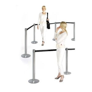 Barijera sa trakom je odličan način da brzo i jednostavno usmerite ljude, obeležite prostor ili organizujete redove kretanja. Barijere se obično sastoje od stubova koji su postavljeni na određenim rastojanjima, a između njih se proteže traka koja definiše prostor i usmerava kretanje posetioca. Ovaj sistem se koristi na mestima kao što su aerodromi, banke, tržni centri, pozorišta ili na šetalištima i drugim mestima gde je potrebno organizovati redove.