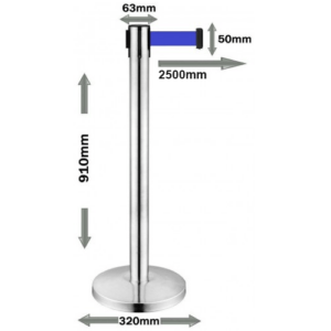 Stubić barijera je napravljena od nerđajućeg čelika, sa čvrstom osnovom koja obezbeđuje stabilnost, čak i kada je traka potpuno izvučena. Traka je duga 2,5 metra i automatski se uvlači, što je čini praktičnom za svakodnevnu upotrebu. Na vrhu stuba postoji četiri zakačke koje omogućavaju povezivanje sa drugim stubićima pod različitim uglovima. Možete je koristiti i sa zidnim barijerama za fiksna rešenja, što dodatno povećava njenu primenu.