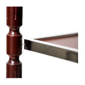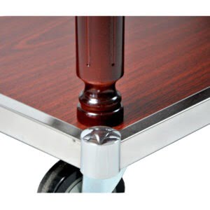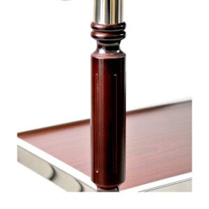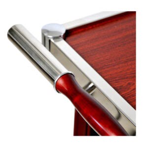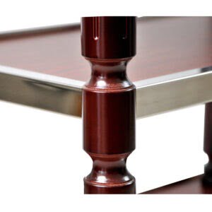 Pouzdanost i izdržljivost konobarskih kolica je zagarantovana zahvaljujući visokokvalitetnom materijalu od kojeg su napravljene – nerđajućem čeliku. Ovaj materijal osigurava da će vaša kolica zadržati svoj izgled i funkcionalnost godinama, čineći ih dugotrajnim investicijama za vaš posao. Kvalitetno drvo mahagoni boje na policama i nogarima dodaje eleganciju i stil svakom prostoru, čineći ih privlačnim i estetski prijatnim.