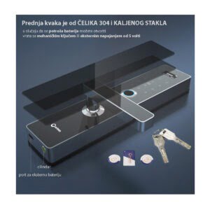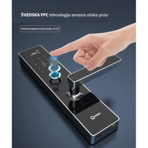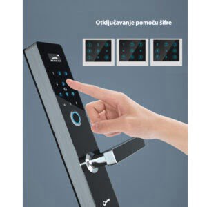 - Otisak prsta: Pomoću otiska prsta brzo i bezbedno ulazite u svoj dom bez nošenja klasičnih ključeva. Ovaj sistem daje dodatnu sigurnost jer je otisak jedinstven i teško ga je kopirati, što ga čini pouzdanim rešenjem za bolju zaštitu vašeg doma.