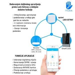 Samostalna kontrola pristupa omogućava otključavanje pomoću šifre, kartice, taga i mobilne aplikacije, što ga čini izuzetno fleksibilnim i pogodnim za različite korisničke potrebe. Uz digitalnu tastaturu, lako ćete uneti željenu šifru, dok opcije kao što su kartice i tagovi omogućavaju jednostavan pristup bez potrebe za pamćenjem šifara.